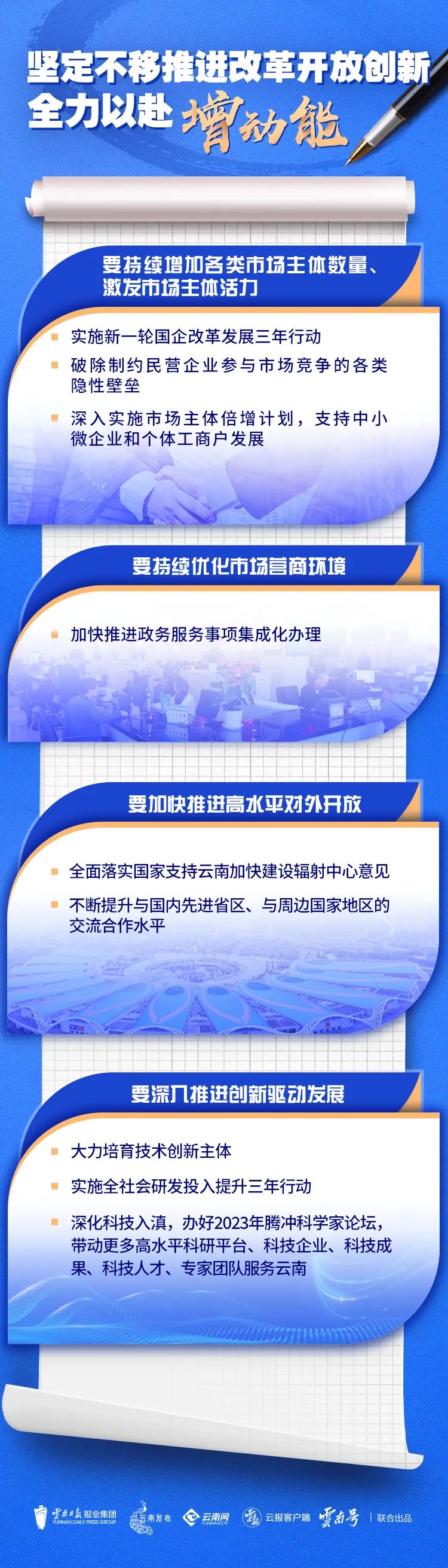 ?省委經濟工作會議提出,堅定不移推進改革開放創新,全力以赴增動能。其中的重點任務,如持續增強各類市場主體數量和活力、持續優化市場營商環境等都在通過體制機制改革打通堵點、解決難點、消除痛點,都是落實落細新一輪國企改革發展三年行動、促進民營經濟高質量發展三年行動、打造一流營商環境三年行動等重要工作舉措。