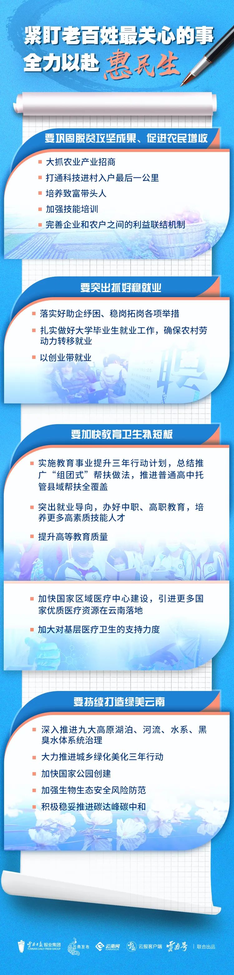 ?民生政策重在惠民有效。2023年云南的民生答卷起筆處就“緊盯老百姓最關心的事”。“加快教育衛生補短板。這兩件事,群眾最關心,明年要重點抓。”會場傳來的聲音,溫暖有力。
