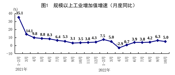 10月份,面對更趨復雜嚴峻的國際環境和國內疫情新發多發等多重挑戰,在以習近平同志為核心的黨中央堅強領導下,各地區各部門認真學習貫徹落實黨的二十大精神,堅決貫徹落實黨中央、國務院決策部署,按照疫情要防住、經濟要穩住、發展要安全的要求,高效統籌疫情防控和經濟社會發展,加力落實穩經濟各項舉措,國民經濟延續恢復態勢,工業投資穩定增長,就業物價總體平穩,新動能積蓄增強,民生保障有力有效,經濟社會大局穩定。