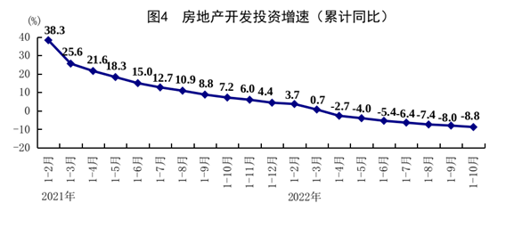 ?1-10月份,全國固定資產投資(不含農戶)471459億元,同比增長5.8%,比1-9月份回落0.1個百分點。分領域看,基礎設施投資同比增長8.7%,制造業投資增長9.7%,房地產開發投資下降8.8%。全國商品房銷售面積111179萬平方米,同比下降22.3%;商品房銷售額108832億元,下降26.1%。分產業看,第一產業投資同比增長1.4%,第二產業投資增長10.8%,第三產業投資增長3.7%。民間投資增長1.6%。高技術產業投資增長20.5%,其中高技術制造業和高技術服務業投資分別增長23.6%、14.0%。高技術制造業中,電子及通信設備制造業、醫療儀器設備及儀器儀表制造業投資分別增長28.7%、27.8%;高技術服務業中,科技成果轉化服務業、研發設計服務業投資分別增長24.7%、22.5%。社會領域投資增長13.1%,其中衛生、教育投資分別增長30.4%、8.5%。10月份,固定資產投資(不含農戶)環比增長0.12%。