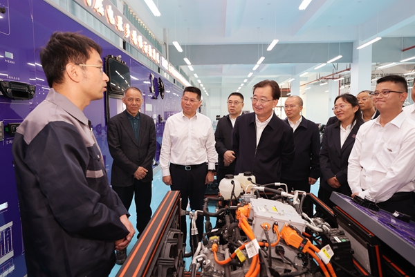 9月24日,王寧在昭通職業學院(yuan)調研職業教育發展時(shi),與智能制造學院(yuan)新能源汽車教學實訓室師生交流。
